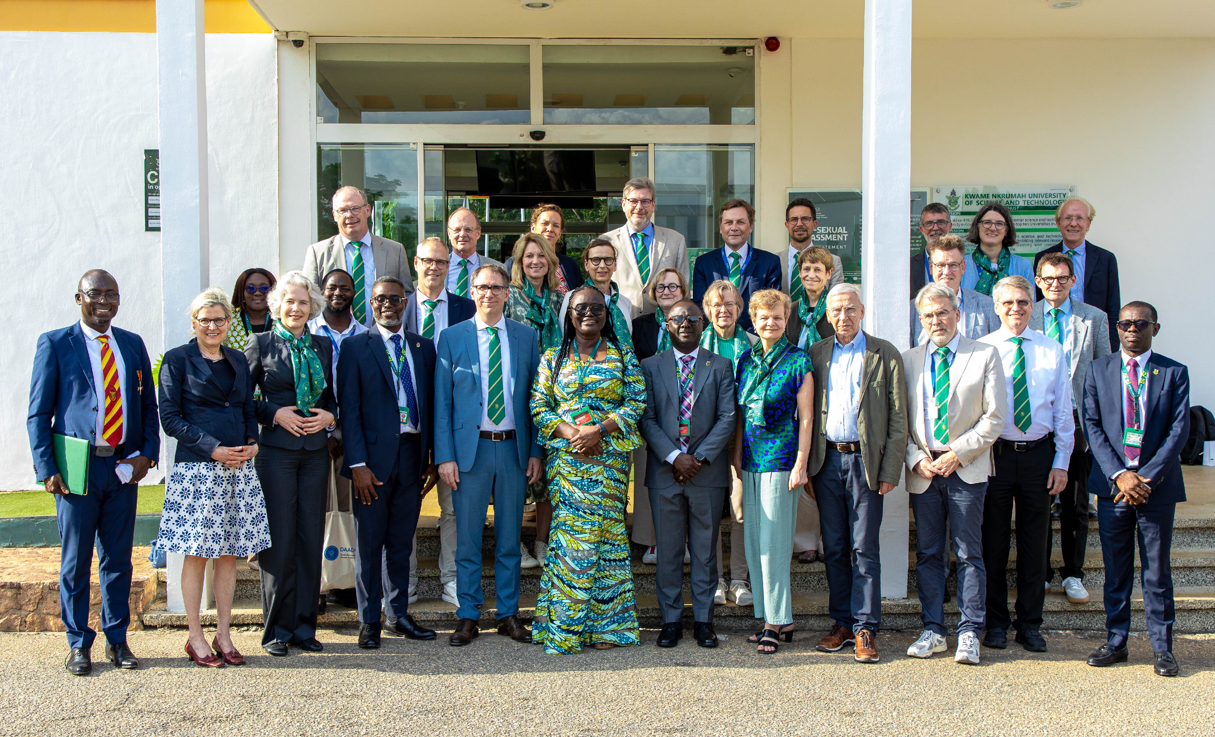 On Wednesday, March 25, 2026, the International Programmes Office, IPO, in partnership with the German Academic Exchange Service (DAAD) a led delegation of 20 German university leaders to pay a courtesy call on the Vice-Chancellor of the Kwame Nkrumah University of Science and Technology (KNUST), Professor (Mrs.) Rita Akosua Dickson to explore opportunities for academic collaboration and strengthen existing partnerships.